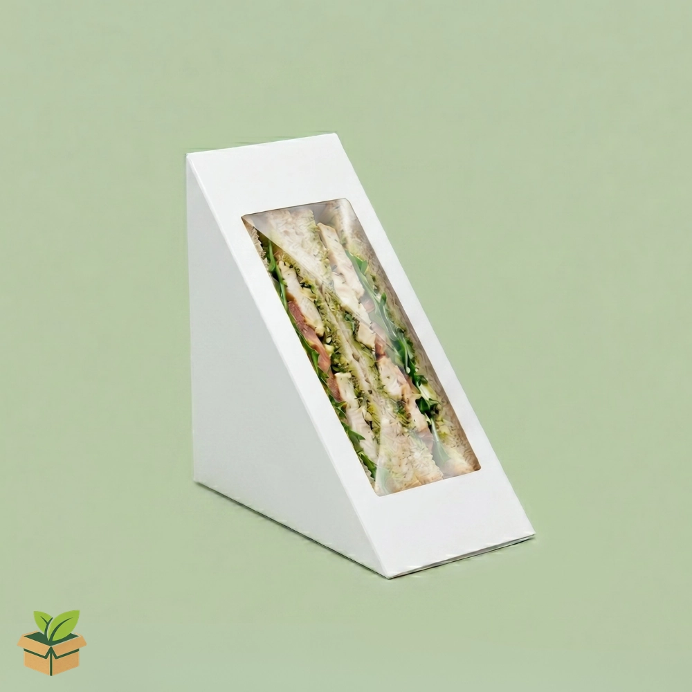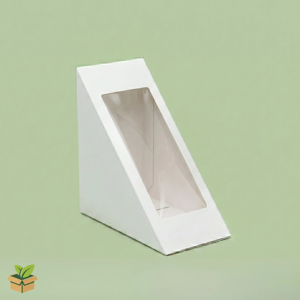 White Kraft Sandwich Box with Window โ Triangle Paper Food Packaging